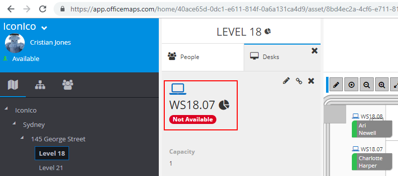 Similarly the People Dashboard Report can be viewed by selecting the user so that they appear in the People Panel. Click on the Pie Chart icon next to the name of the person. More information about Person Dashboard RepCan be found here: