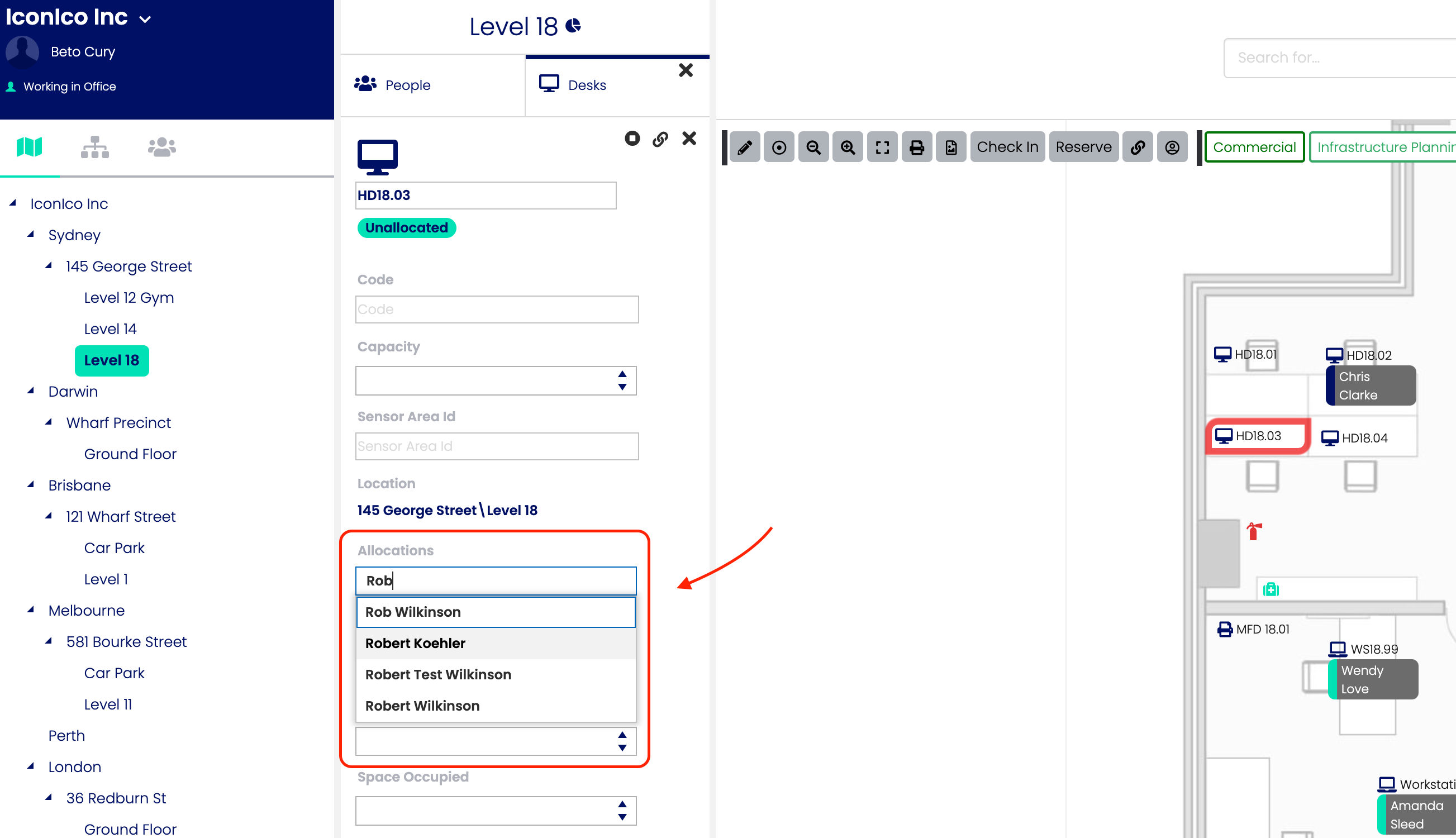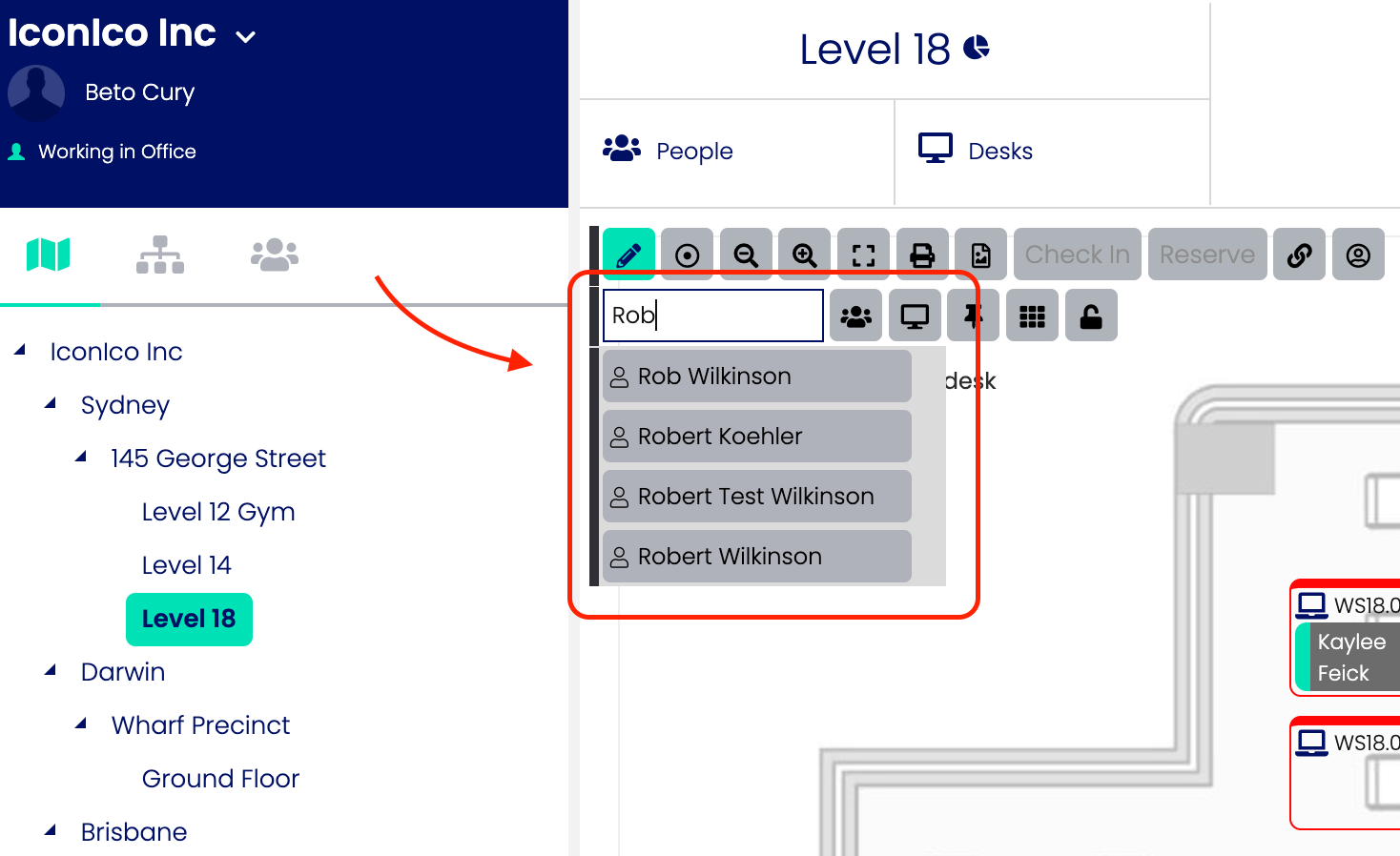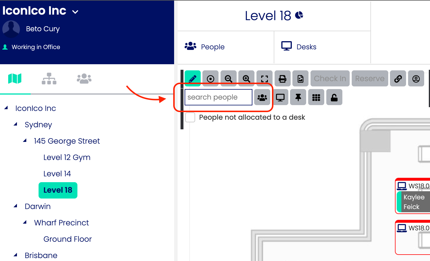 Once a Level Map has been created, people can be added to it so that other users are aware of that person's location. There are three ways that a person can be added to a map: a direct addition to the map, adding the person to an asset through the map or by editing an asset to have an allocation for that user.