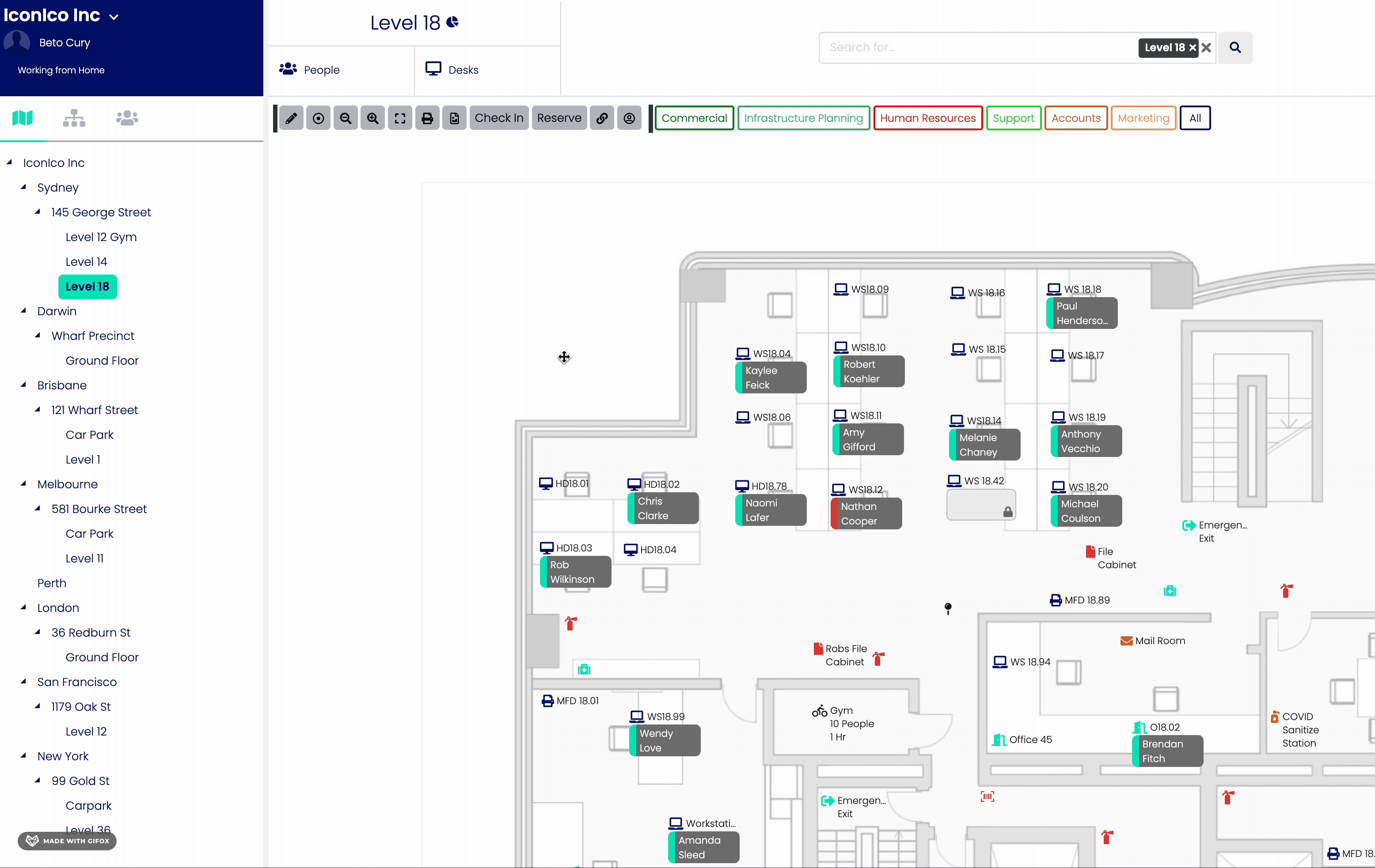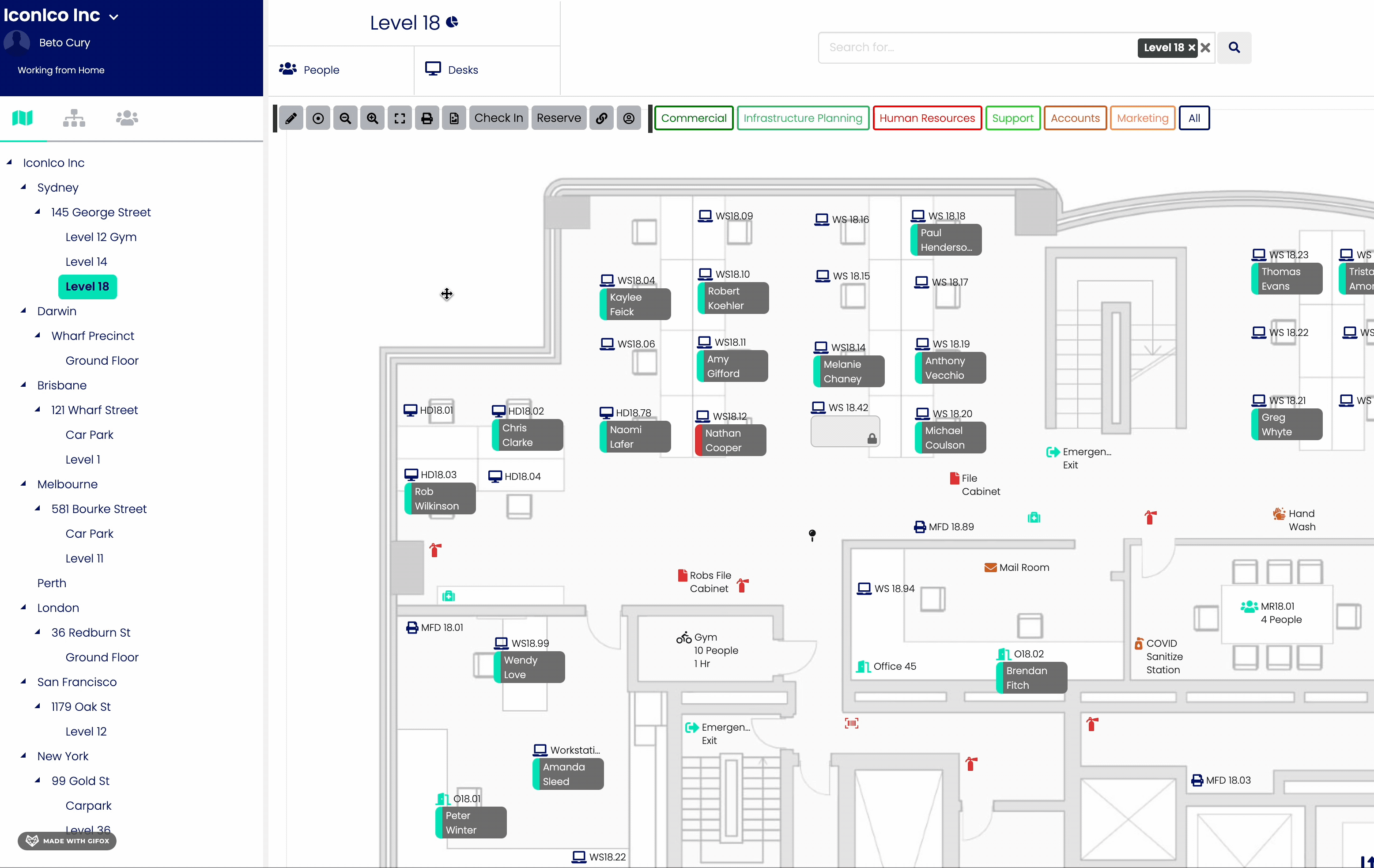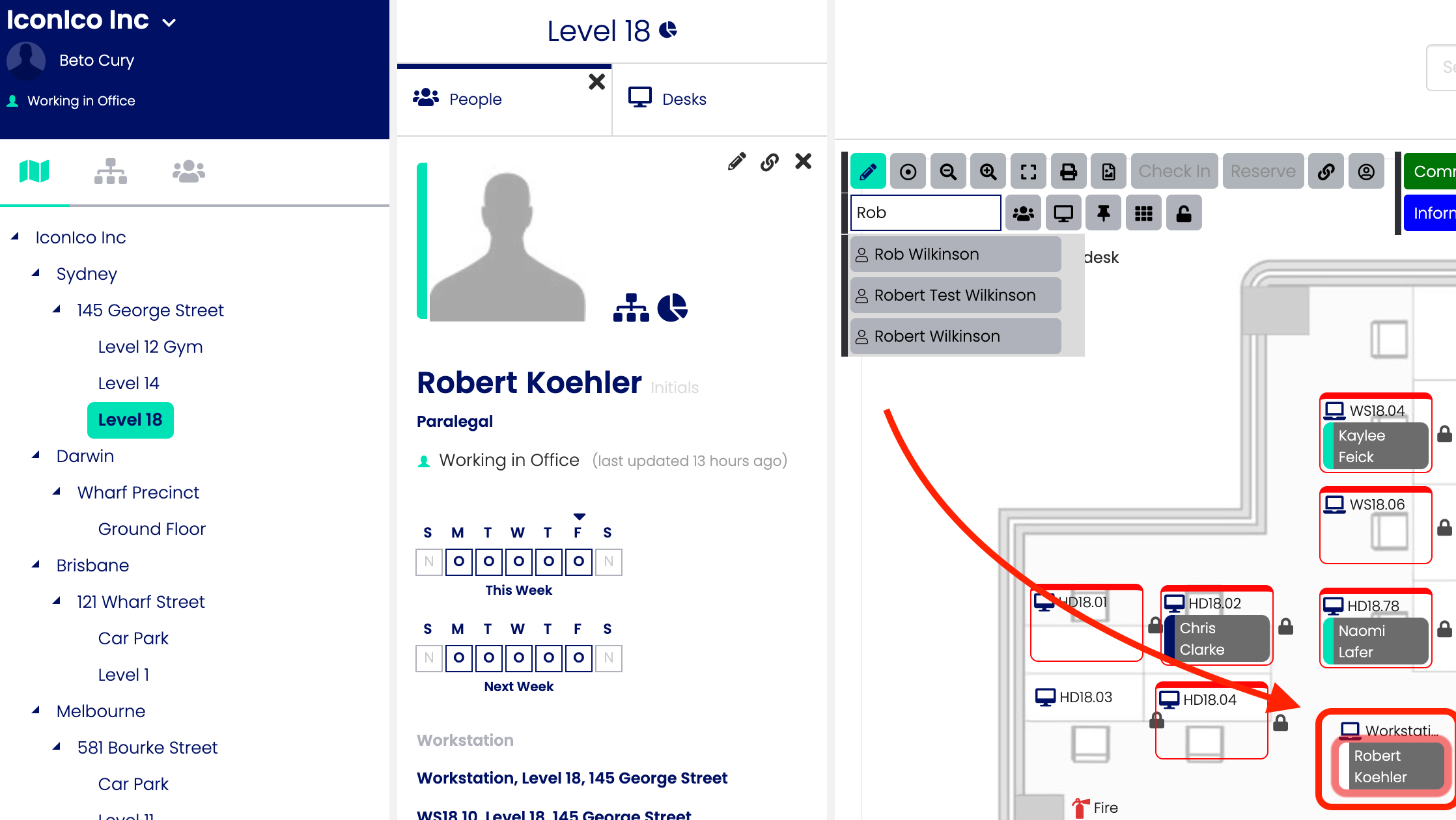 Once a Level Map has been created, people can be added to it so that other users are aware of that person's location. There are three ways that a person can be added to a map: a direct addition to the map, adding the person to an asset through the map or by editing an asset to have an allocation for that user.